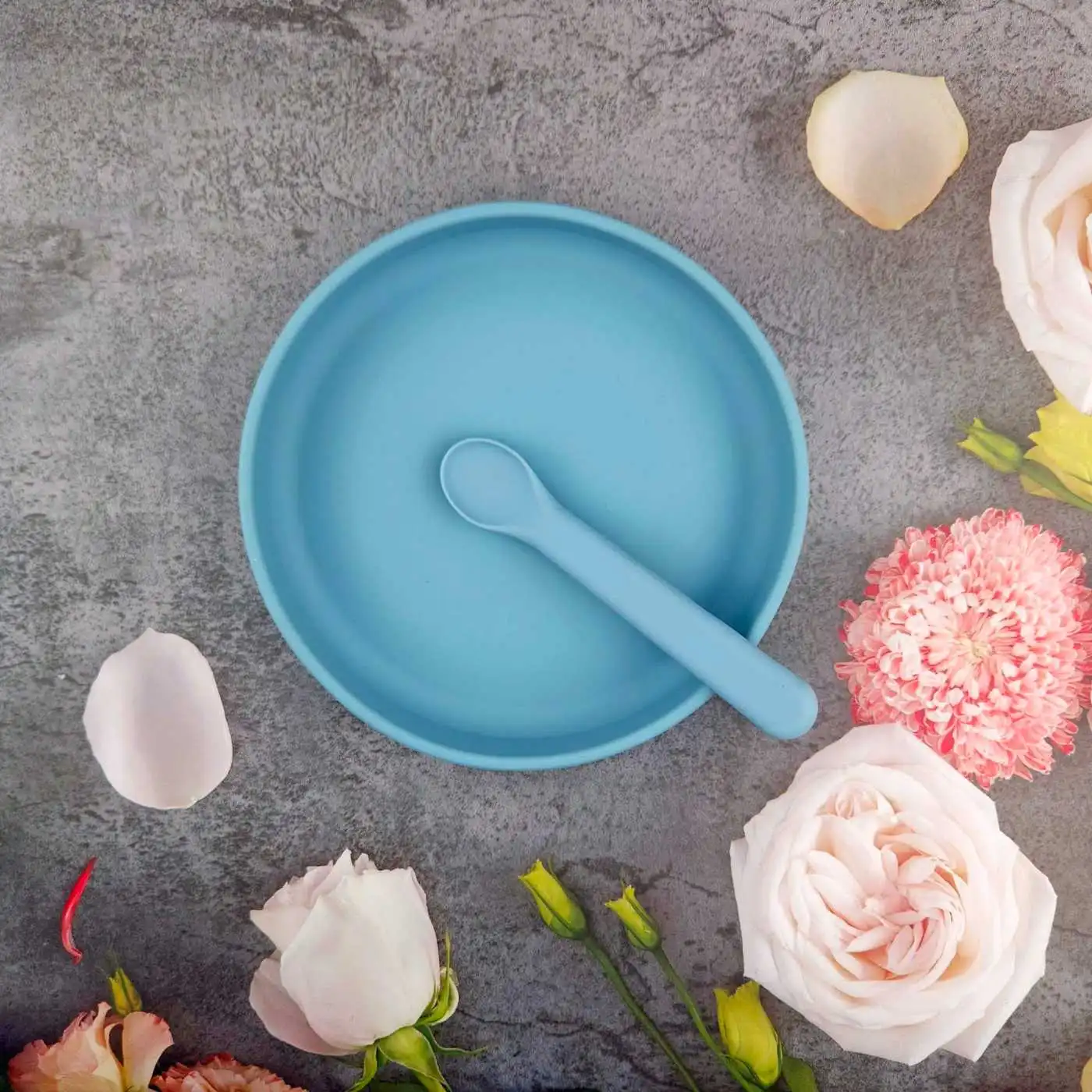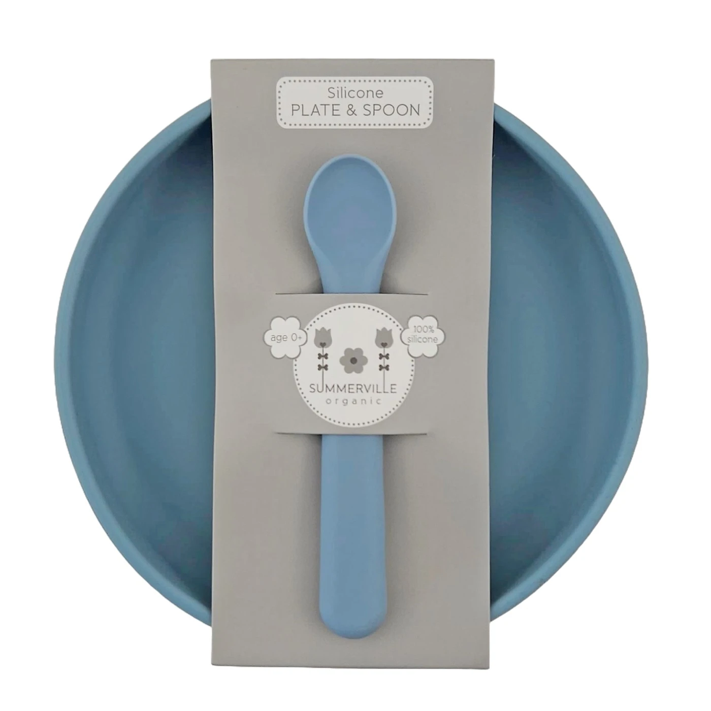 - Βρεφικό σετ αντιολισθητικό πιάτο και κουτάλι από 100% σιλικόνη πιστοποιημένη για τρόφιμα, για το γεύμα του μωρού από τη Summerville Organic.