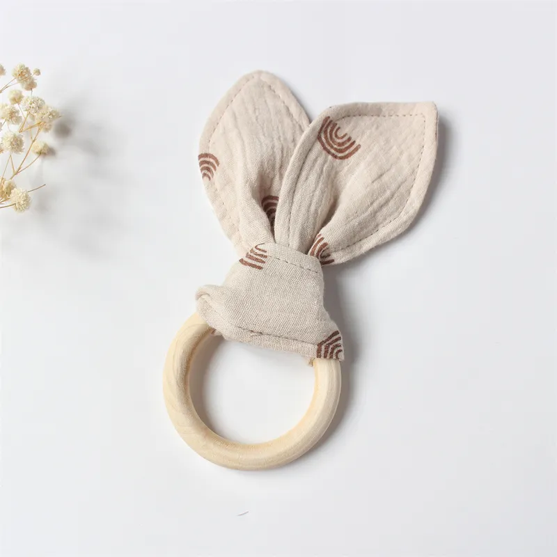 - Κομψό μασητικό παιχνίδι οδοντοφυΐας με λείο και “ζεστό” ξύλινο κύκλο και μαλακό βαμβακερό ύφασμα σε παιχνιδιάρικο σχέδιο. Σχεδιασμένο για εύκολο πιάσιμο, προσφέροντας ανακούφιση στα πονεμένα ούλα και αισθητηριακή διέγερση λόγω των διαφορετικών υφών.