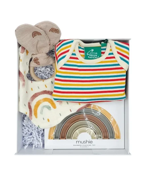 To πιο πολύχρωμο βρεφικό σετ δώρου με ουράνια τόξα.