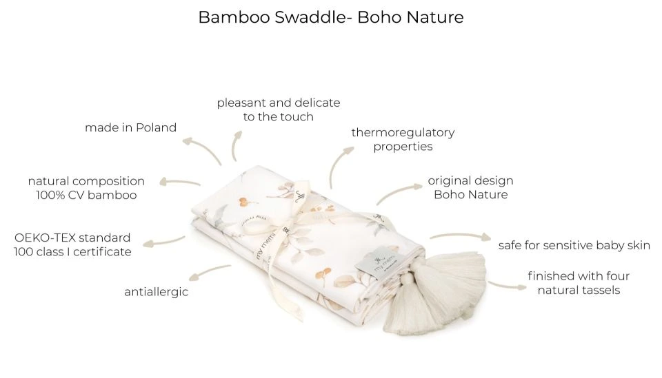 - Βρεφική κουβέρτα My Memi, κατασκευασμένή από υψηλής ποιότητας ύφασμα μπαμπού. Το ύφασμα μπαμπού έχει θερμορυθμιστικές ιδιότητες, είναι εξαιρετικά λεπτό και απαλό, ενώ είναι ιδανικό ακόμα και για νεογέννητο βρέφος από τις πρώτες ημέρες της ζωής του.